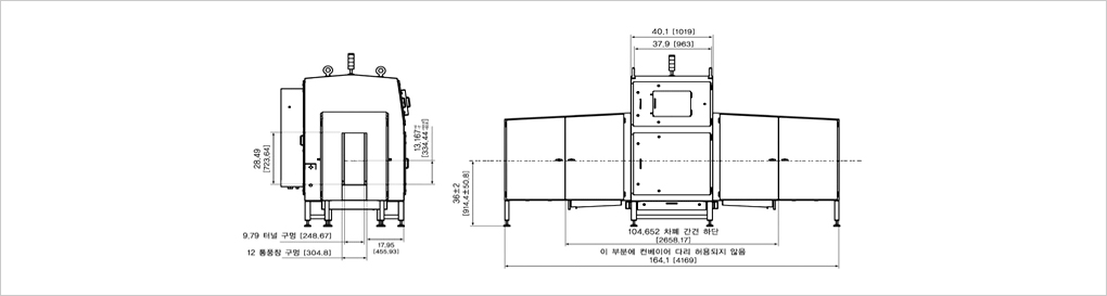 | 기본사양 | 터널 크기 | 폭 9.9" * 높이 37.25" 벨트 상단에서 터널 상단까지 18.25" + /-2" (이 크기는 제품에 따라 다릅니다.) |