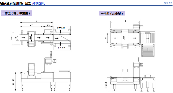 重量检测机(NWC 490)和金属检测机(NMD 530)合并而成的一体型